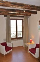 Upstairs is a ‘mansarde’ or ‘vide’ with a cozy sitting area and a magnificent view over Colombotte and the valley of the Colombine.